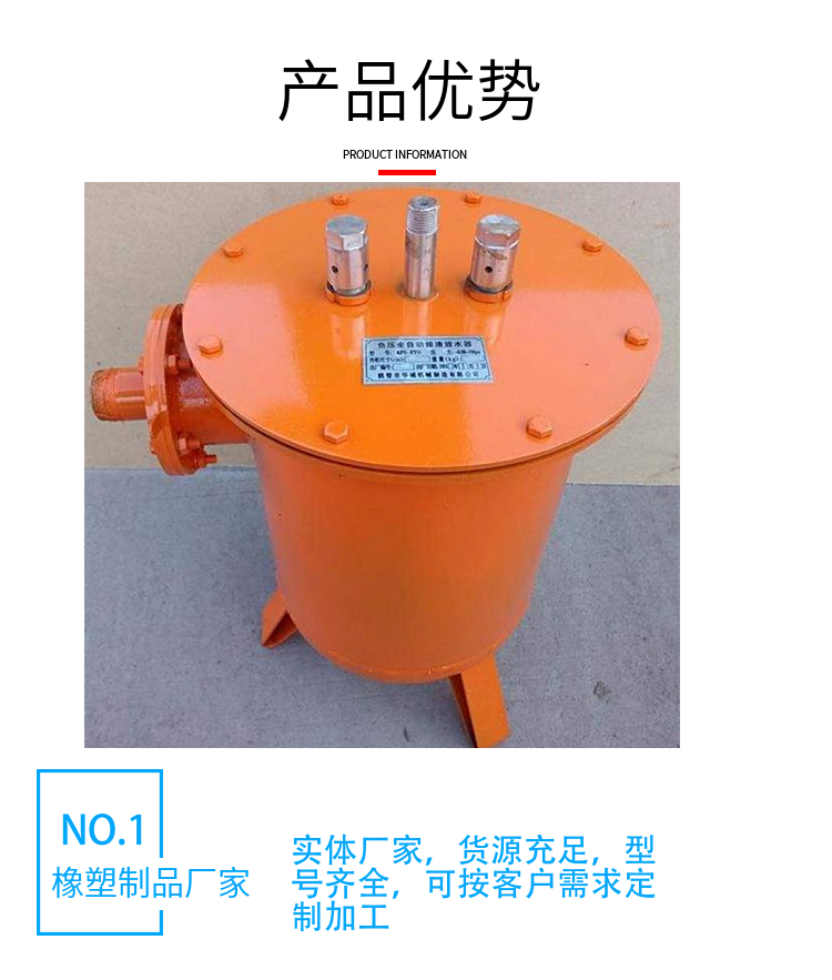 2、安装方式灵活、方便。对于管道中的重要的或严重积水部位的放水,为确保放水效果,可从管道引出积水管与放水器连接,引出一根积水管到放水器上即可实现放水