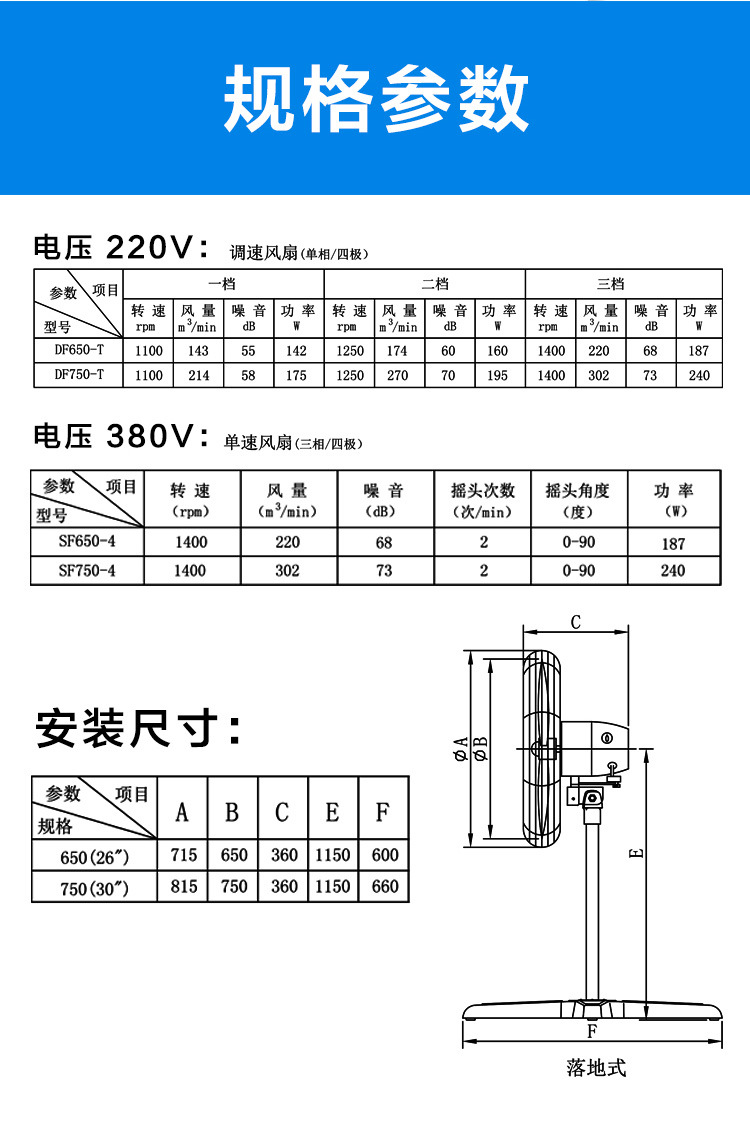 DF500工业用风扇铝合金扇叶 嘉邦落地式仓房风扇型号全