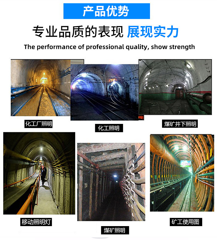 该产品采用大功率LED光源,具有结构紧凑,外形美观,高效节能,安全稳定,超长寿命等特点,可广泛用于具有甲烷或煤尘爆炸的煤矿及非煤矿山井下巷道,硐室固定照明。