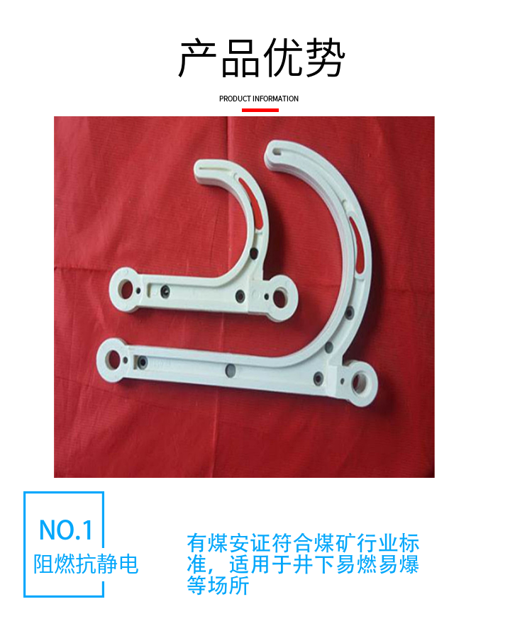 1.GL-PVC18矿用电缆挂钩阻燃、抗静电——挂钩的抗静电及阻燃成分均匀分配在挂钩本体内,因而抗静电及阻燃性能性能指标不会因为使用时间而受到影响,抗静电及阻燃性能均符合煤矿行业标准,适用于井下易燃、易爆的工作场所。