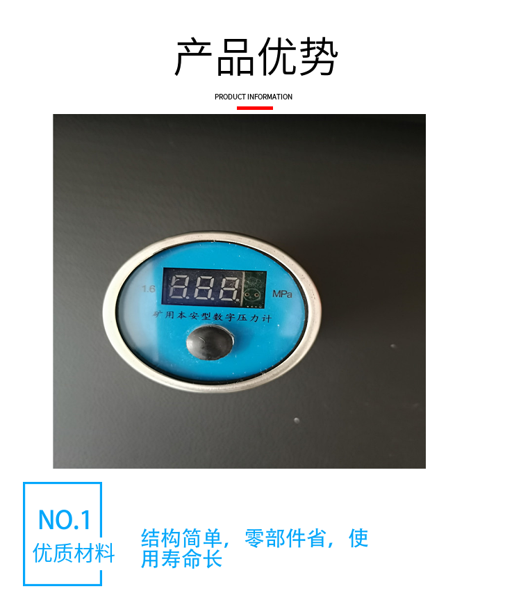 YHY60煤矿用本安型数字压力计主要用于综采支架压力检测,其它液压设备的压力检测。它采用电阻式压力传感器和微处理器控制的电子电路及干电池组成。仪器采用一体化设计,具有防水、防爆、抗冲击、灵敏度高、使用寿命长等特点。是传统的指针式压力表的理想替代产品。
