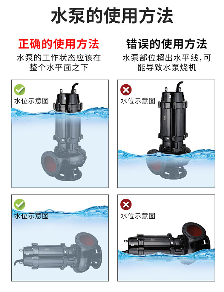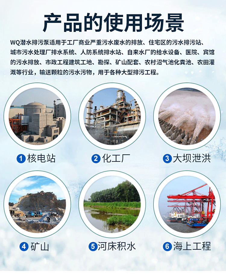 WQ潜水排污泵为水泵与电机同轴为一体,工作时通过电机轴带动水泵叶轮旋转,将能量传递给浆体介质,使之产生一定的流速,带动固体流动实现浆体的输送。电机采用昂贵的紫铜线圈加工而成,防漏的电缆线就算是破损也不会导致电机进水,包装均采用木箱包装,采用双道串联机械密封,叶轮流道是一个从进口到出口的弯曲的流道。