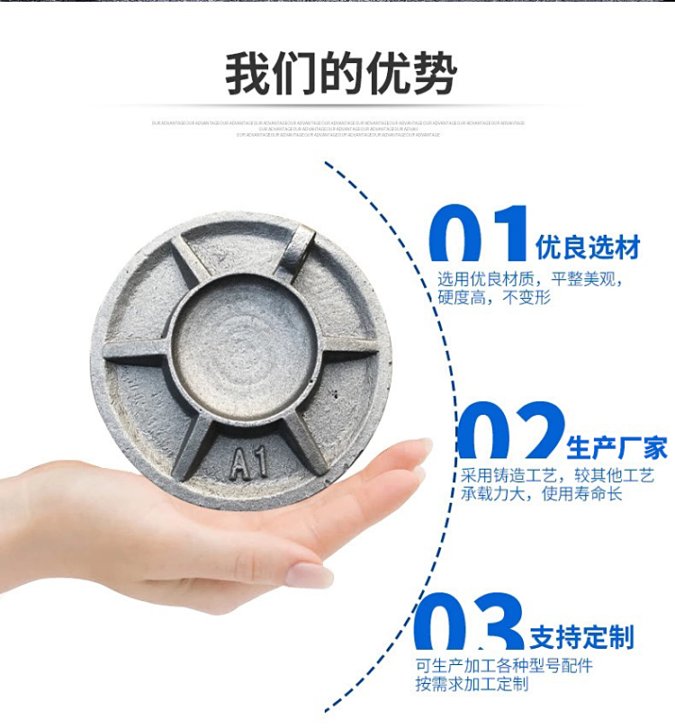 单体支柱柱鞋煤矿用柱鞋底面设计为向上拱起的弧形面,只设一只回收耳,加强筋增为八条。受力状态好;稳定性好,不滑移、不侧斜,能有效地减少支柱钻底量,相同条件下约为平底柱鞋钻底量的二分之一至三分之一,能保证支柱的初撑力和迎山力,提高支护,并有重量轻,强度高,节省材料等特点。