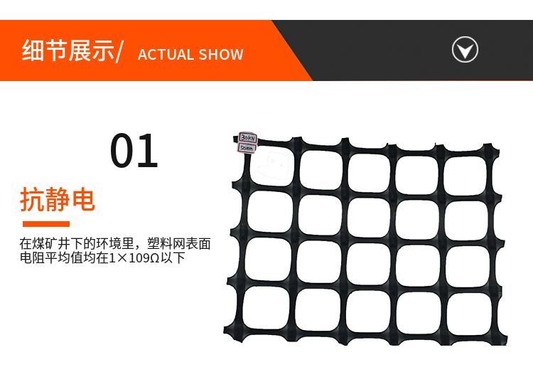 1、磨擦不易产生静电。在煤矿井下的环境里,塑料网表面电阻平均值均在1 x 109以下;
