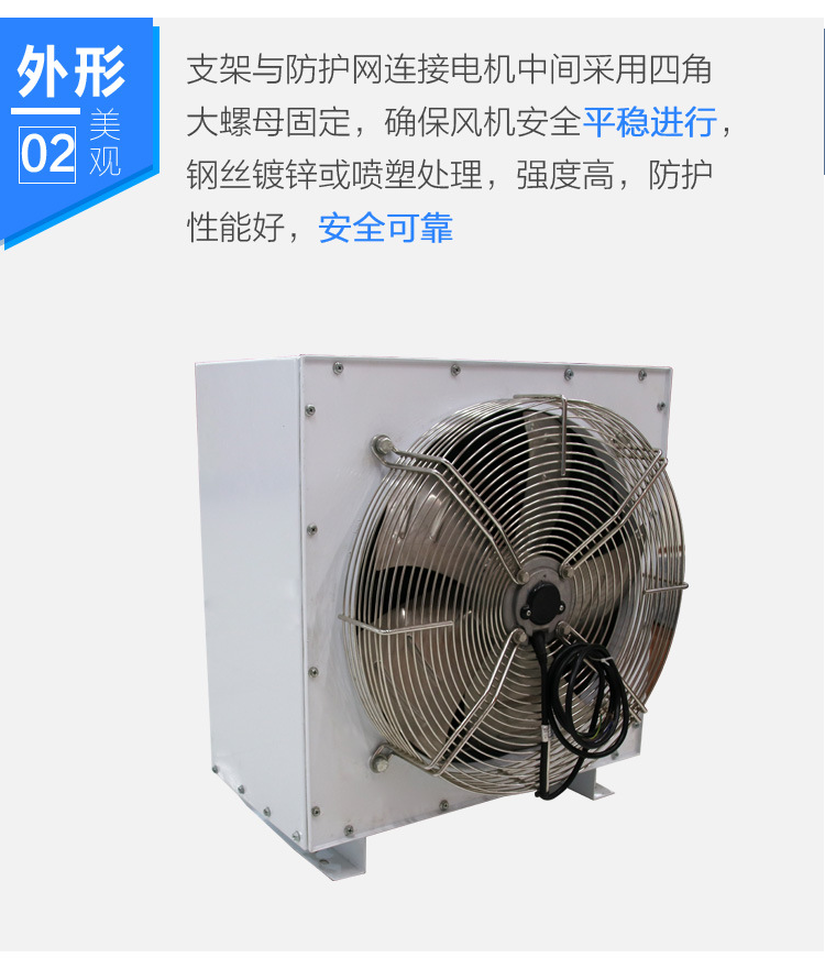 矿用防爆电暖风机产品分类:D型暖风机:以电能为加热能源。GS型暖风机:适用热媒为90℃以上热水。S型暖风机:适用热媒为80℃以上热水。TS型暖风机:适用热媒为55~75℃以上热水。NC型暖风机:适用热媒为蒸汽和水。Q型暖风机:适用热媒为蒸汽。