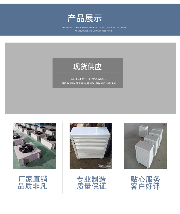 嘉邦D80性暖风机除了这种型号以外,我们还有s型,gs型暖风机,他们的主要区别便是加热方式的不同,d型暖风机的加热方式是电加热,s和gs型是水加热,适合于有锅炉的煤矿企业,是一种节能省电的取暖方式。主要产品有:D20暖风机,D80暖风机,D60暖风机,D40暖风机,D80暖风机,DNF电暖风机,Q型暖风机,GS暖风机,NC,NC/B暖风机,DRG柜式暖风机,蒸汽暖风机。