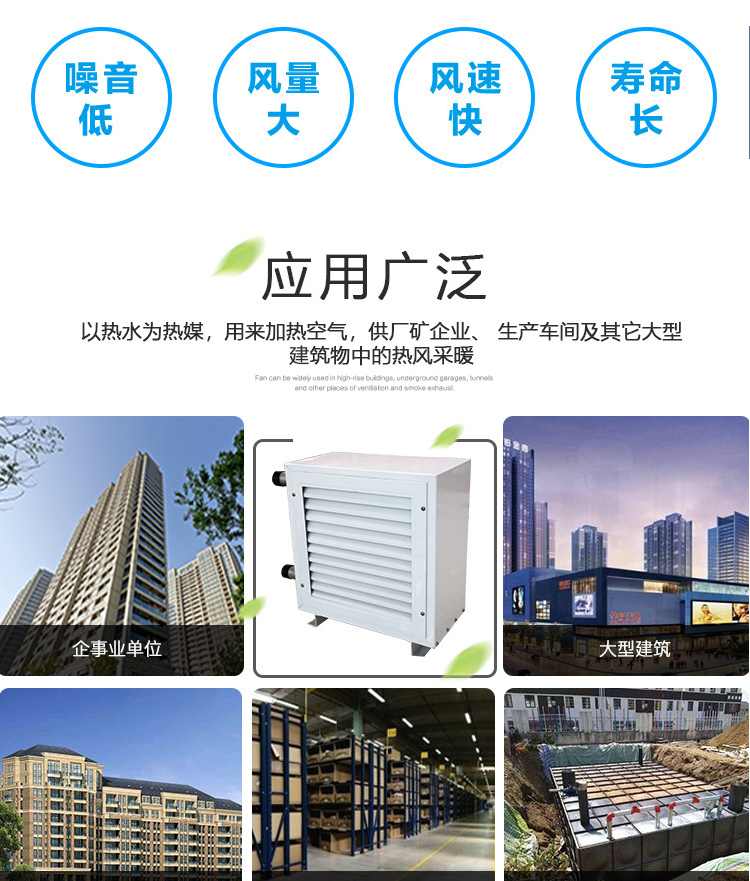 我厂生产的GS型暖风机是代替ZRG型暖风机的新产品。它是以热水为热煤,用来加热空气,供厂矿企业,生产车间其它大型建筑物中热风采暖。该型暖风机是经过反复热工性试验的,性能。GS型暖风机是由通风机,电动机及散热器组合而成的联合机组。适用于空气允许再循环的各种类型车间,当空气中不含灰尘,易燃性的气体时,可作为循环空气采暖之用。GS型暖风机结构简单,安装方便,体积小,重量轻,耗能量低。