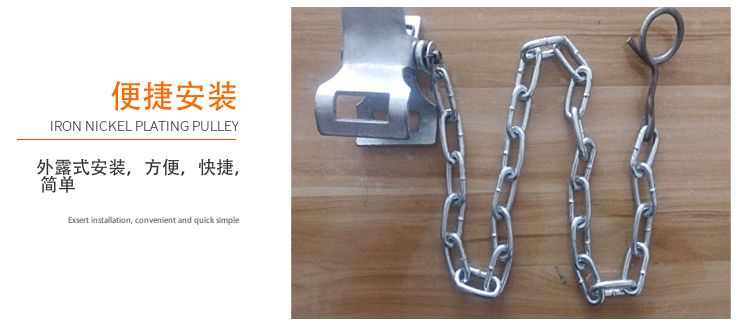 防倒链安装简单方便,将防倒链带夹子的一端卡在金属顶梁(或型梁,铰接顶梁)上,链条和钩子连接单体支柱柱体并固定即可使用。