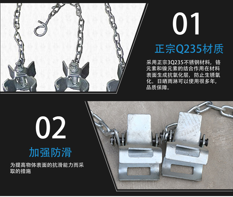 二、防倒链结构主要:一个强力夹子,链条,固定钩三各部分连接组成。