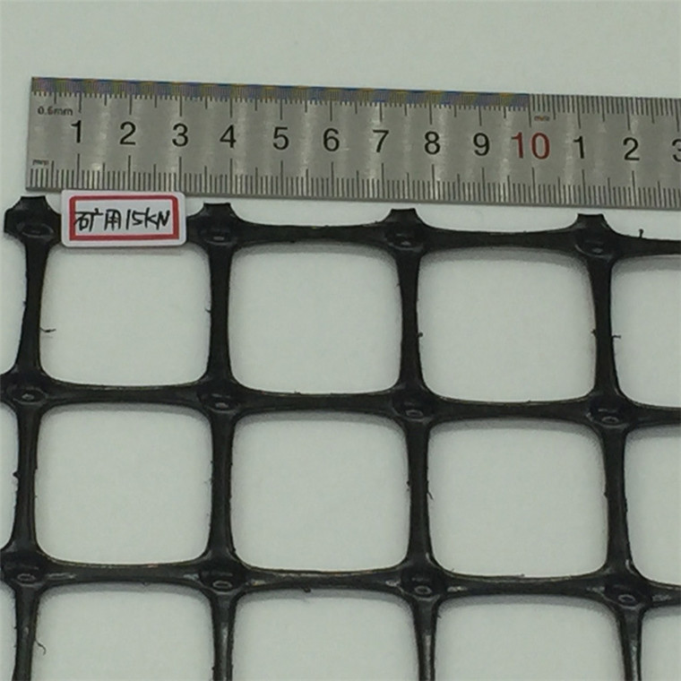 6、纵横方向均有较强的承载能力。经过挤压和拉伸工艺处理后的塑料网,其分子结构重新定向排列,材料的抗拉强度是未拉伸前的2-3倍。双向拉伸形成的筋和肋相互垂直,这种结构使得施加于网面的压力能通过节点有效的向四周筋肋传递,从而大大提高网面整体承压能力。当外力施加于某一根筋(或肋)上时,也将外力均匀的分散到其他的筋(或肋)上降低了单根的集中承载能力.因而不易造成筋肋的断裂。由于这种塑料网是双向拉伸而非编织的,所以网孔蠕变量小,而且网孔尺寸均匀,能有效防止碎煤块的掉落,保护井下工人的安全和矿车运行的安全。