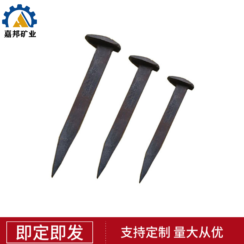 矿用铁路道钉主要用于钢轨或垫板和木枕的联结,即用于联结钢轨和轨枕或垫板和轨枕的一种扣件。矿用道钉采用热轧钢制造,钉头下部的外形与轨底外形适应。钉杆的表面光洁,钉头颚部与钉杆连接处无裂纹,折叠,道钉表面无气泡和妨碍使用的过烧、裂纹,在煤矿、道路交通中得到大量应用。