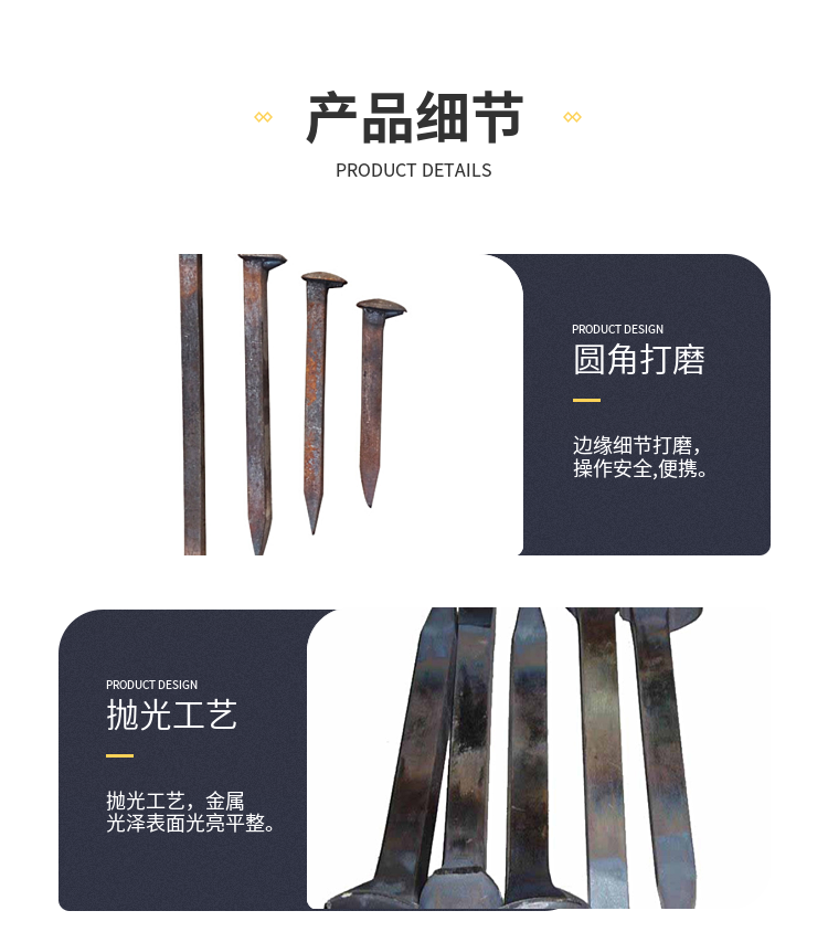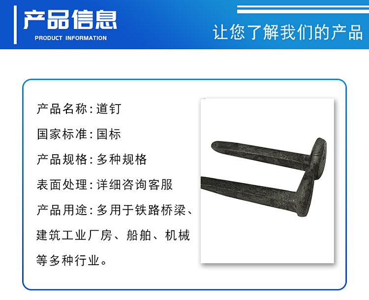 机制道钉矿用铁路道钉 型号:8*80道钉,10*100道钉,12*120道钉,14*140道钉(需提前定做),规格越小价格越高。