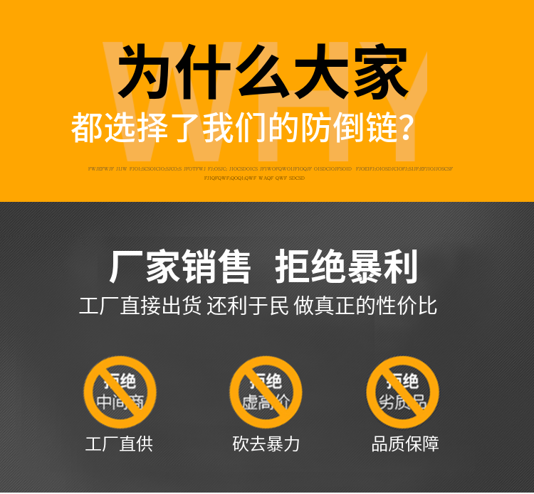 防倒链的规格:0.5m、0.6m、0.7m、0.8m、1m、1.2m ,1.5m
