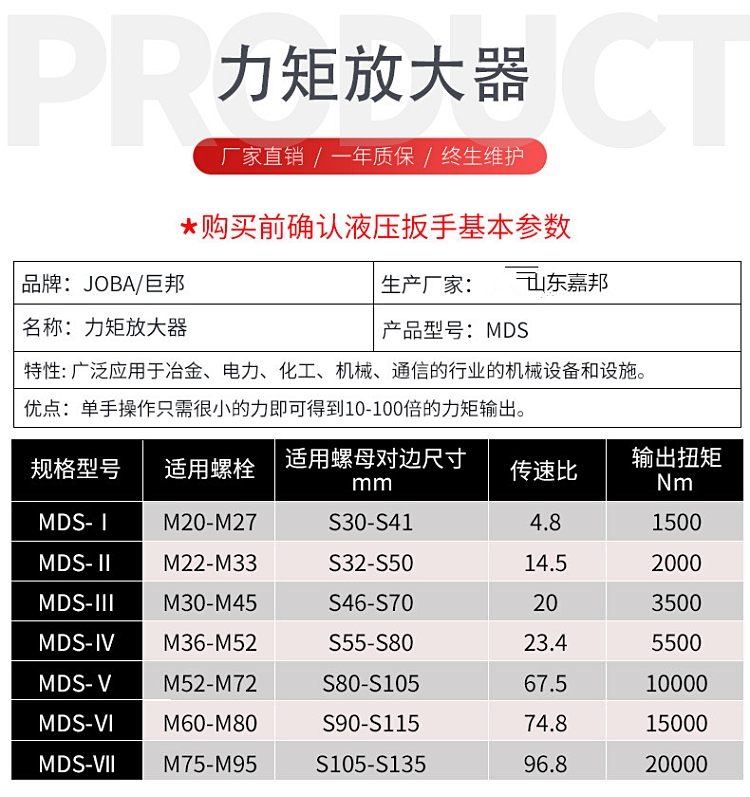 MDS-75扭力力矩放大器MDS-100MDS-150扭力倍增器MDS-200扭力扳手参数性能: