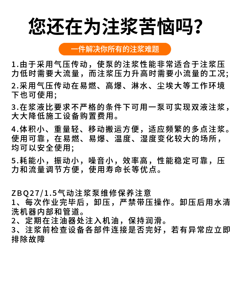 ZBQ27/1.5气动注浆泵 泵产品特点