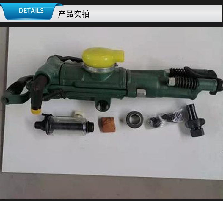 二、YTP26凿岩机产品特色:本机配气方式选用碗状配气阀,布局合理,发动灵敏。并具有重量轻、凿岩速度快、耗气量低、振荡小,操作便利、故障率低、零件寿命长、经济效益好等长处。