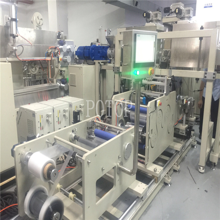 POTOP薄膜双向拉伸机能将厚度在4mm以下, 100见方的可作双向拉伸薄膜材料厚膜样片,按所需的拉伸比,在适合温度及时间内进行成膜拉伸试验,供实验室进行物理和化学测试分析,根据样膜性能,重新确定种类繁多的添加剂和配方。然后应用到生产线上,可大大降低试制成本。任何可于双向拉伸的结晶型和非结晶聚合物,制成厚片,都可在本机进行静态拉伸,如PET ,PA, PP,PS,PETG, PPS, PI, PEEK等等。