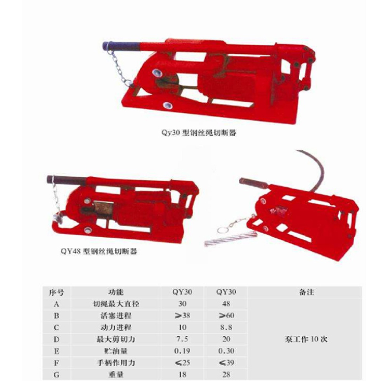 液压钢丝绳切断器参数: