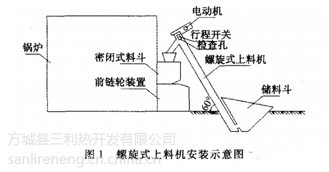①炉前端净距不得小于3m。因为螺旋式上料机安装后,地面输送储料斗与锅炉前段之间的距离为1.9m(以2t/h链条炉排燃煤蒸汽锅炉为例),如果 小于3m,不便于操作和检修。