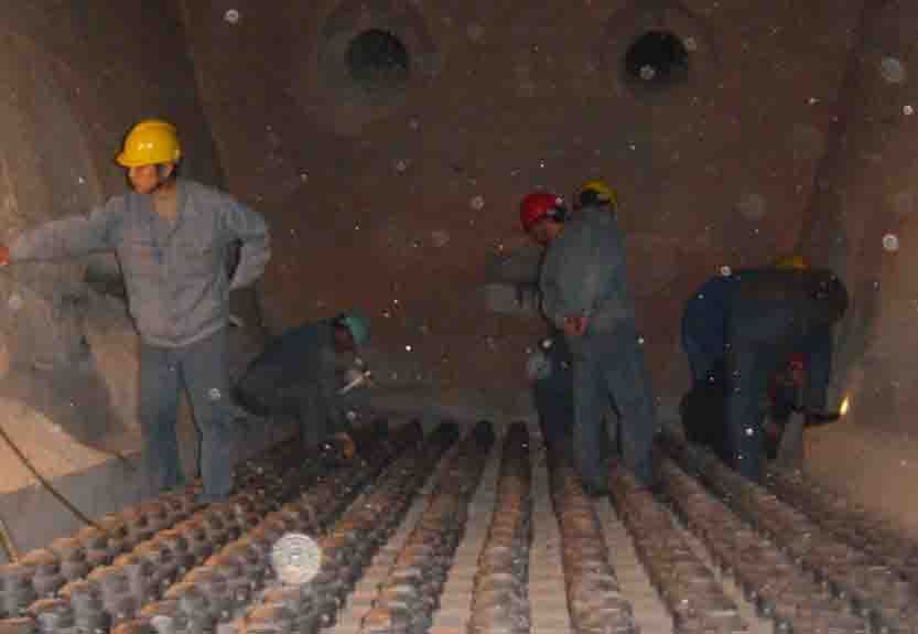 (6)由于生物质燃料灰渣中含有较高的硅、氯及钾、钠等碱金属,灰熔点较低,容易在炉膛内结渣、结焦或沉积于受热面,严重影响燃烧生物质锅炉的传热,甚至造成腐蚀,影响锅炉的运行。因此,需要定期清理炉膛、折烟室和烟管内的积灰和灰渣。