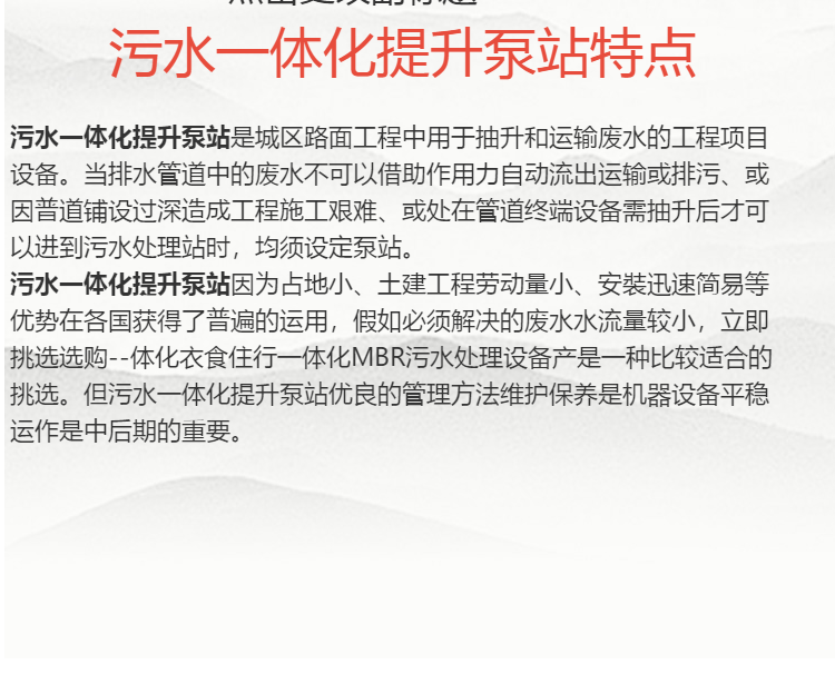现如今,对于大部分的城市都是用水处理设备,提升雨污水,排水管网都是流进河道,然后汇入大海里,地埋式智能泵站就是其中之一,但对于污水的有效排放,还是要认准污水一体化提升泵站。