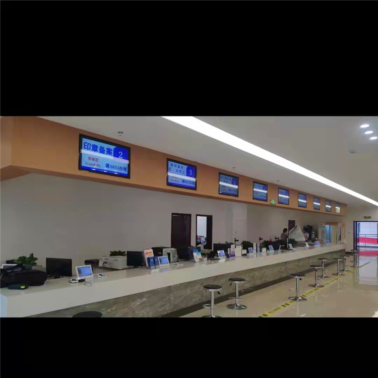 每个工位一块显示屏。界面自定义设置;显示本窗口的工作人员信息,闪烁显示叫号信息。播放单位的通知等宣传内容;