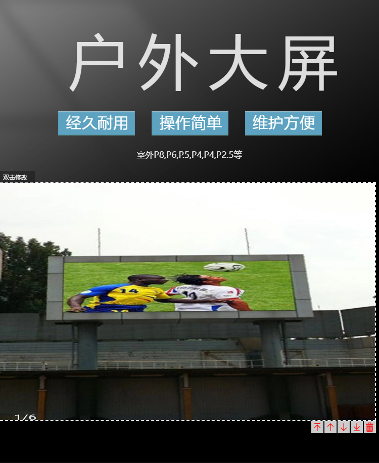 室外P5全彩显示屏采用超高亮度的LED灯殊,太阳强光底下远距离仍清晰可见;亮度在5500-7500MCD左右,显示屏色彩均匀性超高,显示画面更细腻;模块安装面的平整度要求控制在正负 0.1mm;面罩经过特殊处理保证产品颜色的一致性,并可有效减小色差,支持逐点校正功能,保证使用过程中颜色和亮度的一致性。