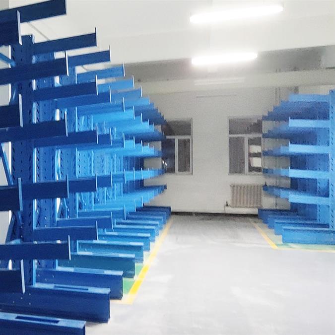 悬臂式货架采用型材立柱,配高强度悬臂,适用于存放长形物料、环型物料、板材和不规则物料等。前伸的悬臂可以是单面或双面,具有结构轻、载重能力好的特点,单臂承重可达500kg。特别加固的立柱结构,可以承受2000~3000kg压力。设计背拉增加货架整体稳定性,安装简易,配件齐全。适合存放长条形、板形、圆形货物,如管材、线材、板材等,此货架能体现其独特性能。 悬臂式货架是由在立柱上装设悬臂来构成的,悬臂可以是固定的,也可以是移动的。由于其形状像树枝,故又形象地称之为树枝形货架,如图所示。该货架适合于存放钢管、型钢等长形的物品;若要放置圆形物品时,在其臂端设挡块以防止滑落。此种货架可采用起重机起吊作业,也可采用侧面叉车或长料堆垛机作业。
