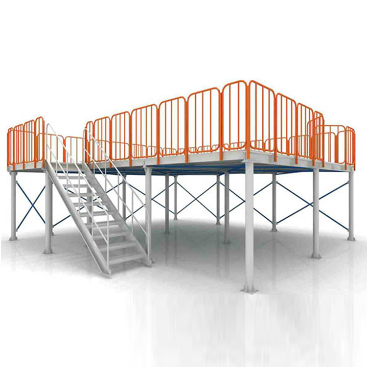 钢平台结构由立柱,主、次梁,楼层面,楼梯,护栏组成。整体组装,无须现场焊接。通常每个平方米的承受力在300-1000kg,立柱与主、次梁钢性固定,使整个平台结构稳定,可以根据实际需要选择不同的楼面板以满足消防或防尘,防小件坠落要求。楼面下方可以根据需要配置照明系统。货物输送可以采用液压升降平台、货梯或叉车。所有材料均采用碳素结构钢,表面喷塑处理,承载力强,外观简洁大方,应用各行业。
