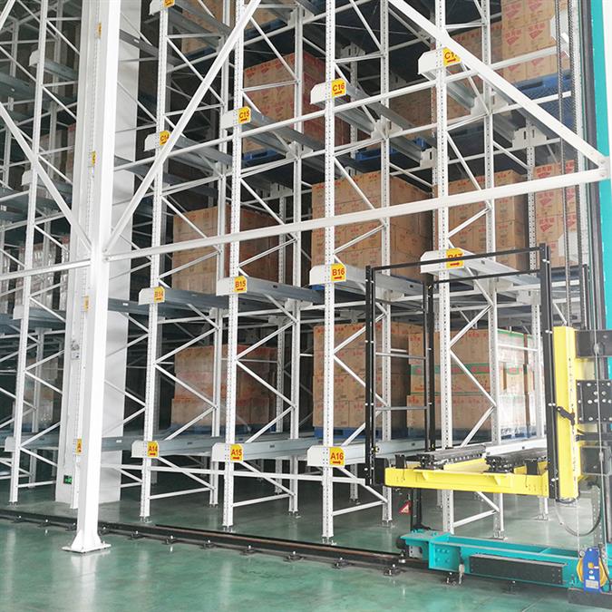 存货:由叉车将货物放在货架巷道导轨的前端,通过无线电操作的WAP-1穿梭车,可以承载托盘货物在导轨上运行;