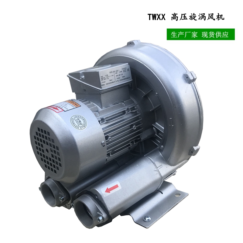 接通电源后,风机旋转,因为叶轮有凹槽设计,会带动空气流动,所以空气通过进风口处进入泵体内,空气在里面搅动,每个凹槽经过漩涡式式的增压,一道一道的循环增压,最终形成强大的气流能量,通过出气口排出泵体外,以供使用。