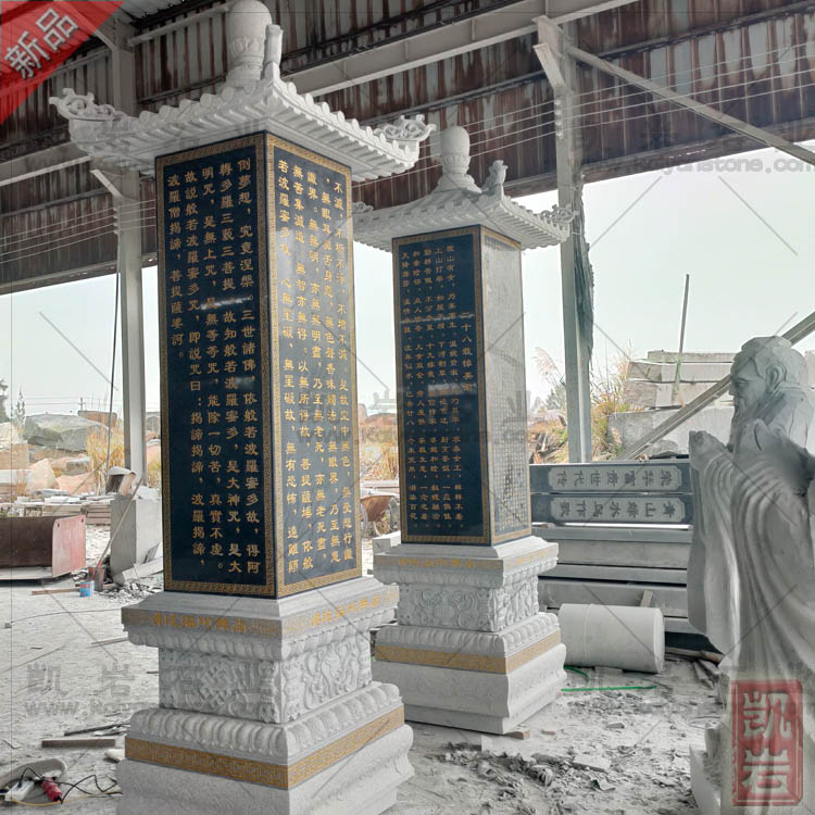 经幢,中国古代宗教石刻的一种。创于初唐,盛行于唐宋时期,以后转衰,但到明清时仍有雕造。幢是梵名“驮缚若”的译名,原是一种丝帛制成的伞盖状物,顶装如意宝珠,下有长杆,于佛前建之。据《佛顶尊胜陀罗尼经》,佛告天帝,若将该经书写在幢上,则幢影映在人身上即可不为罪垢染污。因此佛教信徒多建幢以作功德。初唐时期,开始用石刻模拟丝帛的幢,现存较早的纪年石幢,是陕西富平的永昌元年(689)八月立佛顶尊胜陀罗尼经幢。经幢一般可以分为幢座、幢身、幢顶3部分,都是分别雕刻,雕好后再累建成整体的。幢座多是覆莲状,下设须弥座。幢身呈柱状,多作八面体,上雕经文或佛像等,有的幢身又分为若干段,上面的柱径小于下面的柱径,中间用大于柱身的宝盖相隔。盖上一般刻着模拟丝织品的垂幔、飘带、花绳等图案。幢顶一般刻成仿木构建筑的攒尖顶,顶端托有宝珠。幢体上所刻佛经,主要是佛顶尊胜陀罗尼经,也有少数刻心经、楞严经等。有极少数刻道德经的是道教石幢。刻经所用文字一般是汉字,个别的有用少数民族文字的,如河北保定就有刻西夏文的明代石幢。石幢的雕刻细致,造型优美,是珍贵的古代石雕。