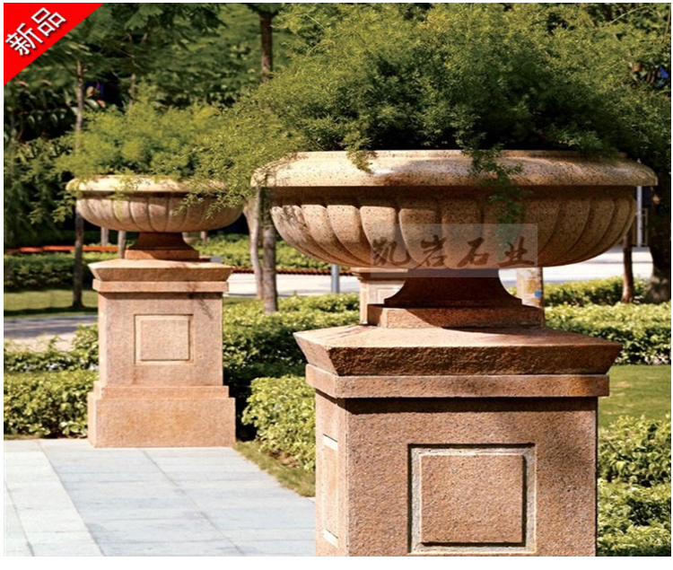 厂家出售石雕花钵 中式石雕花钵 户外小区装饰 凯岩石业