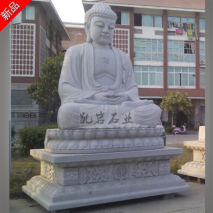 石雕释迦牟尼佛是由天然石材来雕刻的,石雕释迦牟尼作为佛教创始人,人们雕刻的佛像,“千佛一面”都以他为标准,数量蕞多。肉髻凸出、饰波发、面容圆润,双目微启、表情庄重、和蔼、淡泊,还有一丝不易察觉的笑意,给人以抚慰关怀的亲切之感。着通肩袈裟,手施与愿、无畏印,以及其概括的整体造型与变化多端的錾刻手法,结合传统的点击工法,使得作品脸、手、衣、带乃至云、花、座在不同肌理效果的对比中呈现出既丰富多彩又高度统一的崭新面貌。