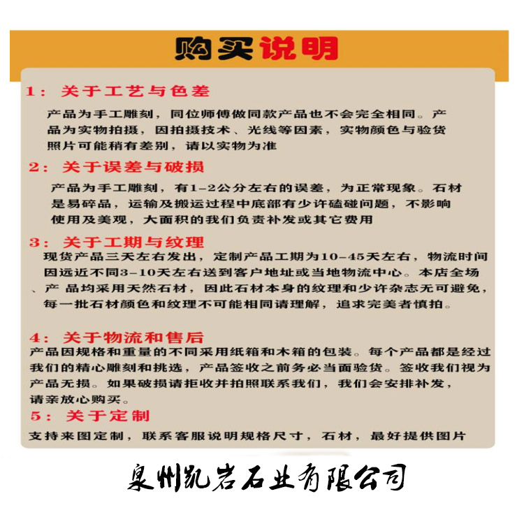 泉州凯岩石业位于“中国石雕之乡”福建惠安崇武镇,是一家提供从设计开发到生产加工全方位服务的雕刻企业。公司秉持“精益求精,诚信为本,精诚所至,金石为开”的经营合作理念和黄金行为准则,对作品精于技艺,对客户诚于相待,成就无数盛誉而归的雕刻作品。