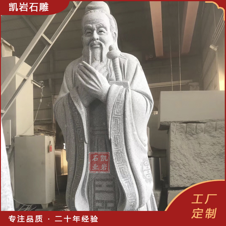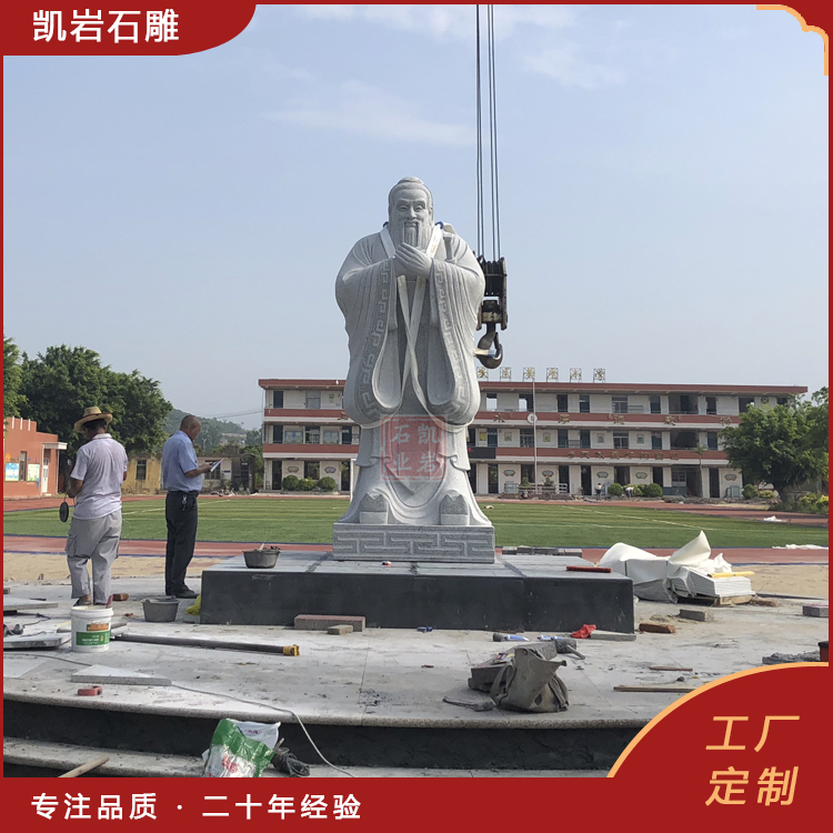 石雕孔子像一般安放地点是学校,或者孔庙、孔府等地方摆放孔子像,石雕孔子雕像常见石材有花岗岩,汉白玉,青石等各种石材。石雕孔子,制作成雕像的有众多的版本,但是大部分的孔子雕像都有一个共同点,就是双手交叉放于胸前,这个特点也成了孔子雕像所必须有的。