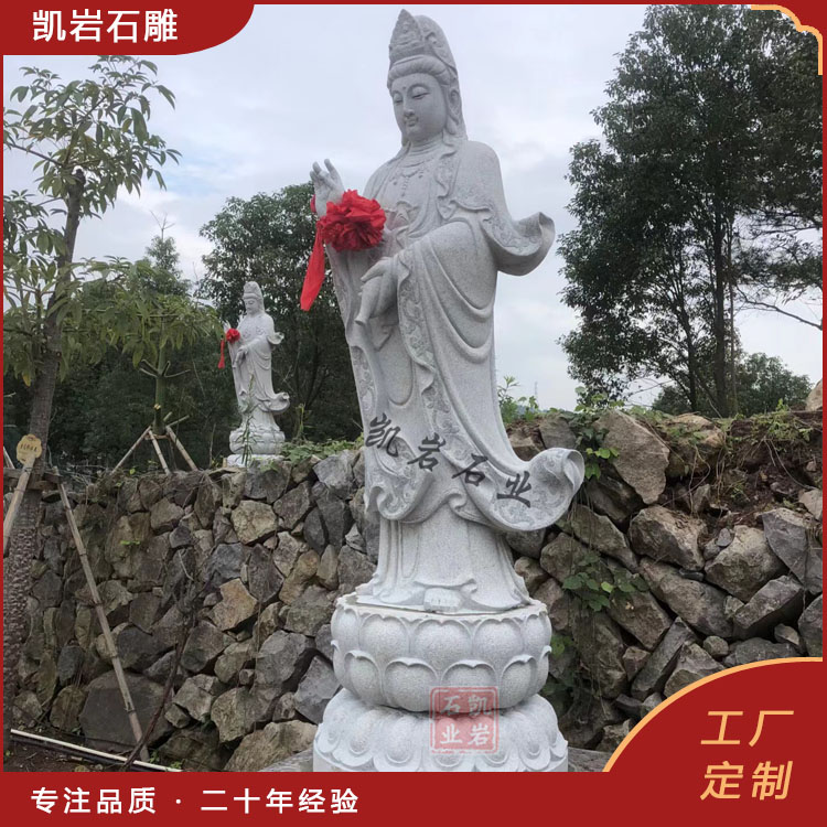 2021新款石雕滴水观音 观音雕塑 花岗岩定制 寺庙佛像石雕