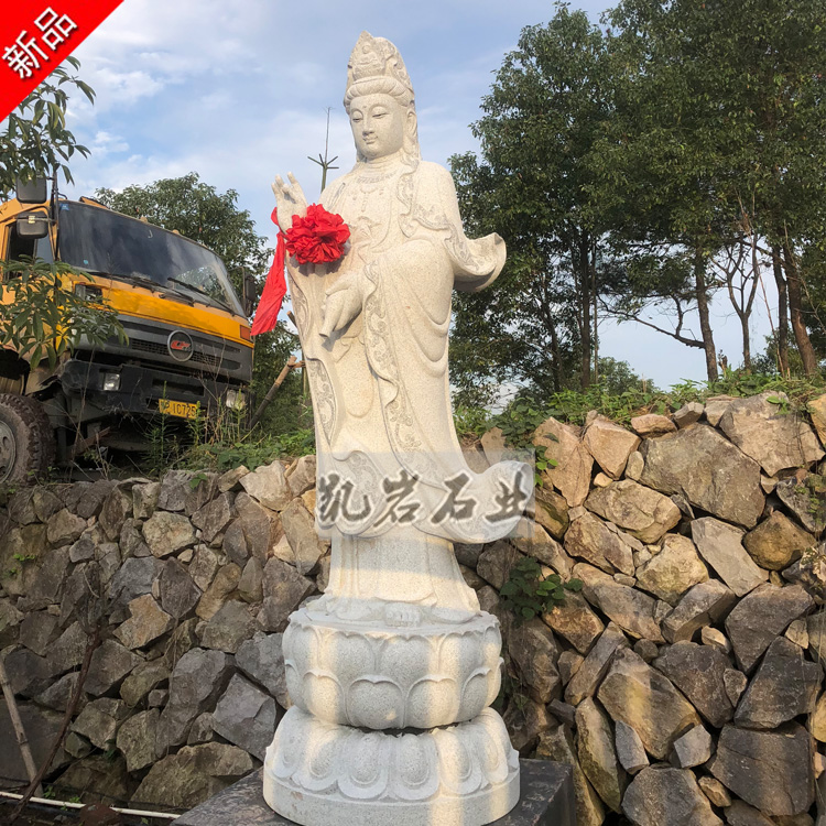 石雕滴水观音也称为洒水观音,是现在比较常见的观音形象,此观音像也正是观音三十三应身形象之一,石雕滴水观音佛像的造型多为一手持瓶作泻水状,一手作法印或持杨枝。石雕滴水观音广泛用于宗教寺庙建设、景区名胜古迹装饰摆设。