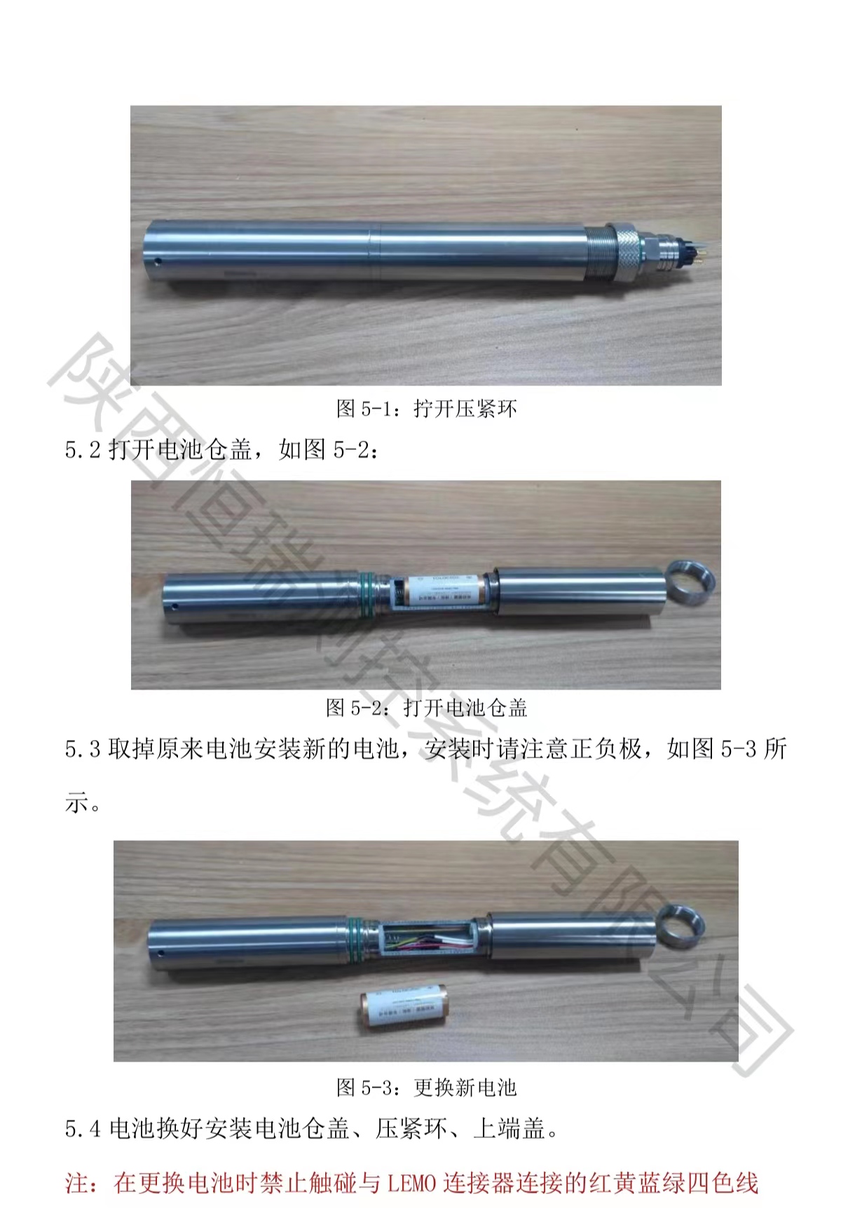 5.4电池换好安装电池仓盖、压紧环、上端盖。