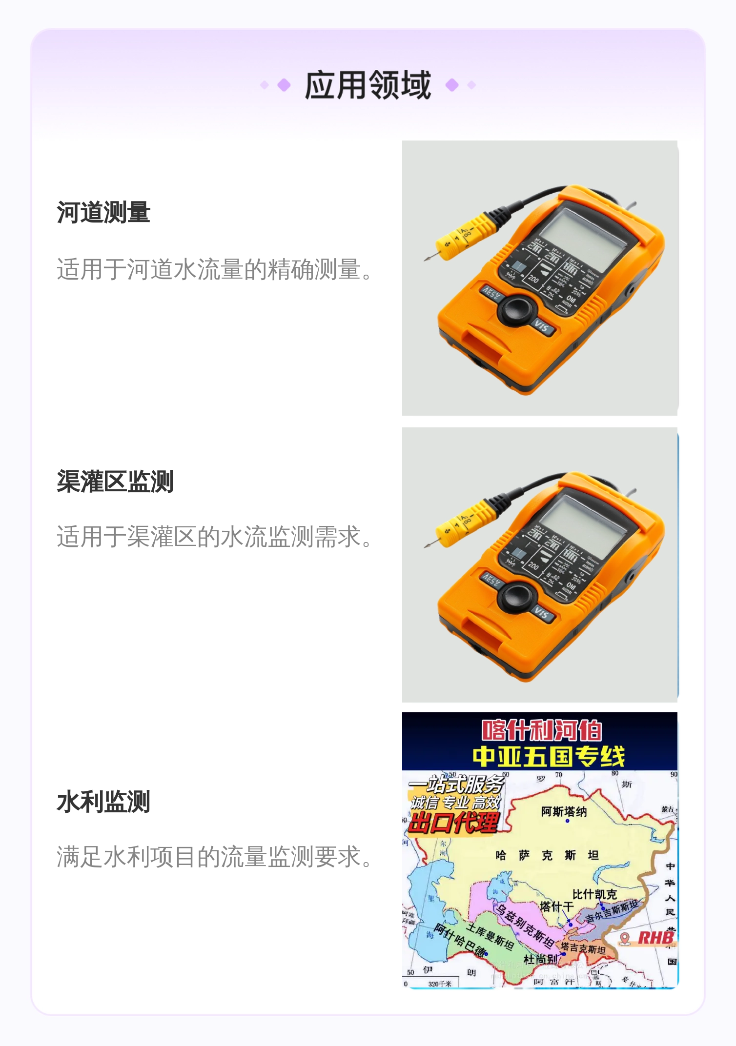 河道、渠灌区等水流测量 |