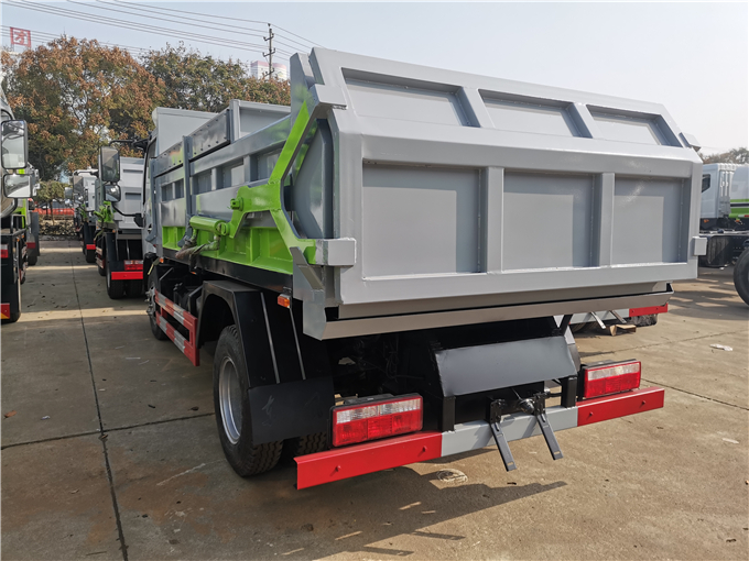 自装卸式污泥清运自卸车:配挂桶提升机自动提升铁通,箱体液压油缸举升自卸,后盖液压油缸开启密封条密封。后盖关闭后,整个车厢内四周达到全密封状态,运输中滴水不漏,避免了道路二次污染,符合绿色环保运输标准。厂家供应_污泥运输车 污泥自卸车 污泥勾(钩)臂车