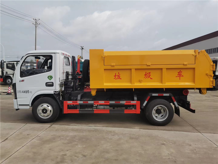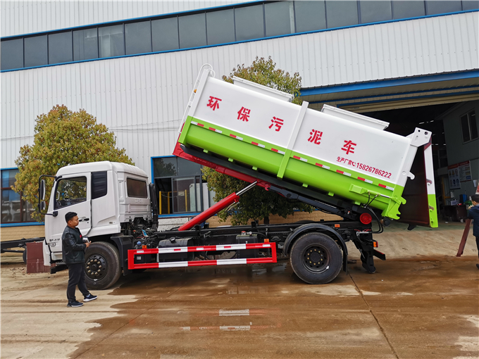 (4)翻转举升臂,使得拉钩能够刺进到箱体吊环下方。箱体可卸式污泥车 拉臂污泥车 东风多利卡勾臂车拉15方污泥粪便