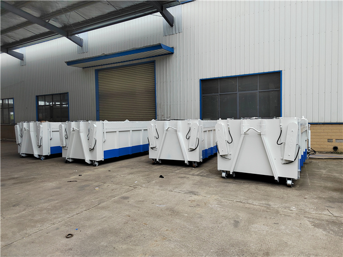 车厢可卸式运输污泥车-环卫垃圾车,箱体液压油缸举升卸料,后盖液压油缸开启和锁紧(卸料口耐腐蚀硅胶密封条密封),顶盖翼展两侧开启。箱式污泥运输车对接装载方式适合装载机装载、人工装载等多种方式。
