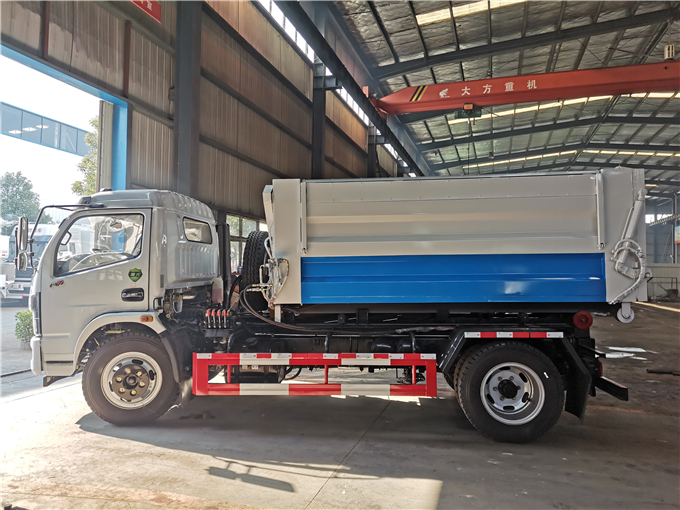 钩臂 垃圾车功能简介:垃圾斗可吊上吊下,钩臂一次工作循环时间60S,该车的特点是垃圾斗与车体分开,能实现一车与多个垃圾斗联合使用,循环运输,充分提高了车辆的运输能力,特别适用于短途运输,如环卫部门对城镇垃及的清理,运输等。采购两台_5立方粪便清运车厂家价格