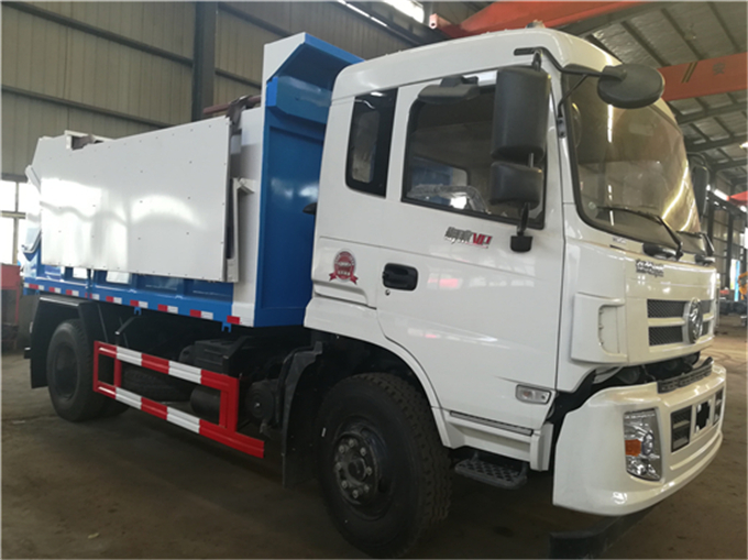 车厢可卸式垃圾车,合理的结构设计,及优良、灵活的简便的性能操作。主要配套件全部采用国内外通用标准件,维修方便。适用于各种固态垃圾的收集。上装结构:主要由拉臂钩总成、可移动箱体总成、液压系统、液压锁紧总成、电液操作系统组成。拉臂总成,采用国标碳钢制诈;主要有吊钩和主臂组成;匹配拉臂上装:采用上海沃勒公司拉臂装置,保证了该车在钩起和卸下载物箱体时,能够使荷载均匀的分布在后桥和辅助支撑上,从而限度的减少车架受力。污泥垃圾运输车因污泥垃圾比重大,要求收集污泥垃圾及转运污泥垃圾的车辆承载力强。同时需满足环保要求,车辆密封性能好,防止污水滴漏及污泥臭气弥漫。