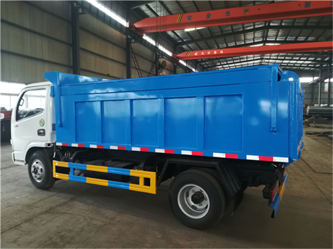 运输污泥车厢体液压油缸举升卸料,箱体底部打斜三角加固,保证了自卸含水污泥、粪污的平顺性,顶盖装料口翼展两侧翻转开启,箱体内部横梁拉筋加固防腐防锈处理,后盖液压油缸开启/锁紧(四周耐腐蚀密封条密封),出厂装水做实验,密封性使其达到运输中滴水不漏,整个操作过程驾驶室内外两用操作,驾驶员不下车即可完成工作流程。国六密封标准5方污泥清运车 5吨污泥自卸车价格