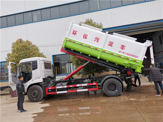 污泥运输车(清运污泥自卸车)四周全密闭设计,厢体内部满焊处理,厢体液压油缸举升自卸,后盖液压开启加有密封条闭合后滴水不漏,适合运输含水〔脱水〕污 泥、含水垃圾、淤泥等。广泛用于污水处理厂、水净化公司、供排水公司全密闭运输含水污泥、清运淤泥、环卫运输垃圾、养殖场运输禽畜粪便等。勾臂式5立方含水粪污车 拉10吨干粪污运输车勾臂车尺寸