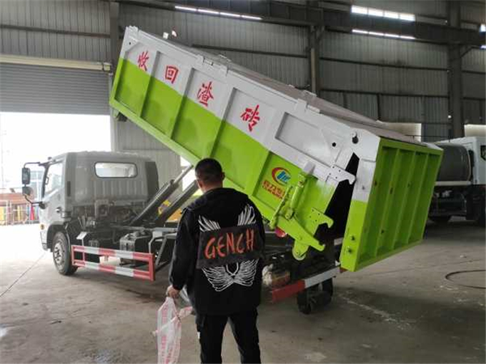 勾臂垃圾车一车配多箱运输建筑垃圾车,小区装修建筑垃圾运输车、地下室建筑垃圾运输车、工地建筑垃圾运输车、环卫垃圾运输车、污泥下水道垃圾运输车、农贸市场水果蔬菜垃圾运输车。垃圾箱和垃圾车可以完全分离,可以把垃圾箱摆放在小区、地下室、路边街道边、乡村等,待垃圾收集完后,勾臂车开往现场通过液压操作控制勾臂运动,将垃圾箱拉到勾臂垃圾车上,此时即可开动车辆,将垃圾运送至垃圾处理站内,进行自卸式倾倒。