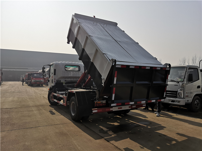 勾臂式垃圾车及勾臂式垃圾车厢就显现,这种只为取代垃圾池,响应“垃圾不落地”的号召,同时简化了清运的工作,不能再将垃圾人工装车了.,可直接由勾臂式垃圾车将垃圾箱勾走清运,省去了原来垃圾池人工装车的工作,减轻了清运的劳动强度。一车配多箱的循环转运模式,也大大降低了村镇对垃圾车的资金投入,一台车可以顶几台车用,那些符合市场的特点让勾臂式垃圾车一下被全国城乡所接受。勾臂式8立方)污泥/粪污自卸车_勾臂式粪污/污泥自卸车 - 资料