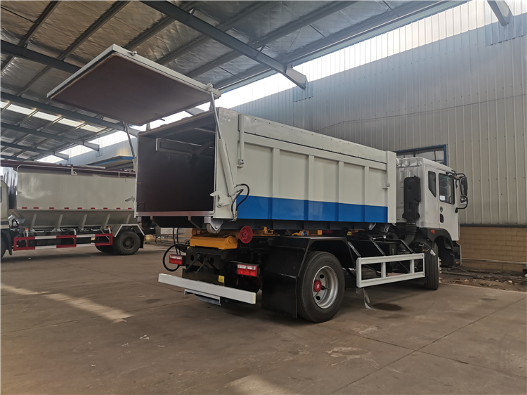 门可自动开启和锁紧.整车的自卸机构和货厢后盖,可以使粪便顺利地倾卸并有效地减少了对生态环境的污染和减少物料途中损耗,液压系统操作方便、灵活。